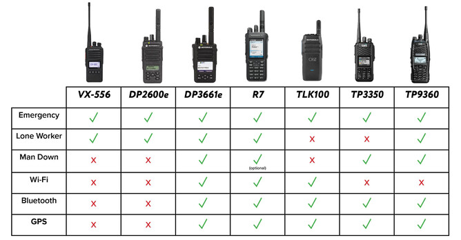 The safety features of two-way radios represent a crucial advancement in workplace safety technology. By prioritising employee well-being and facilitating swift responses to emergencies, these features play a vital role in creating safer work environments. The table below highlights the safety features available on Mobicomm’s core range of portable radios: